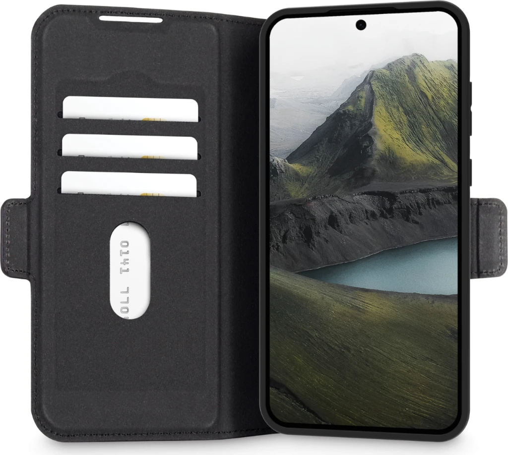 Oslo Pro ist eine stoßfeste Folio-Tasche aus recyceltem Kunststoff mit einer Oberfläche, die aussieht und sich anfühlt wie Leder. Dank der faltbaren Rückseite können Sie Videos im Querformat freihändig ansehen.