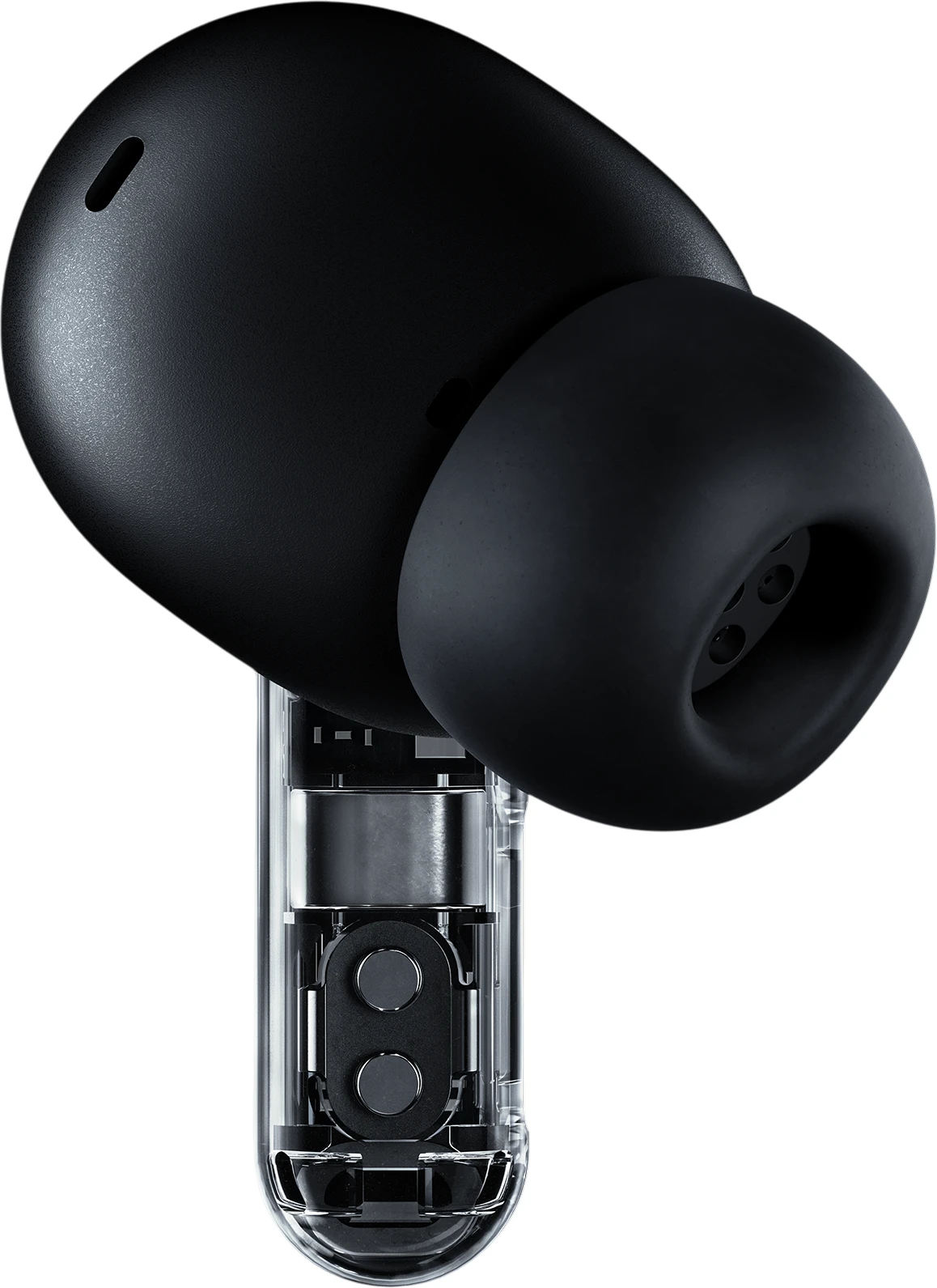 Eine polierte Metallantenne kombiniert mit unserem transparenten Signature-Design sorgt für einen eigenständigen Look – elegant, auffällig und mit stärkerem Signal. Wenn du sie nicht benutzt, sitzen die Buds sicher im geformten Aluminiumgehäuse. Ear (3) wurde schlanker gestaltet und gleichzeitig die Leistung erhöht. Die speziell angefertigte Antenne ist mit nur 0,35 mm außerordentlich dünn, liefert 15 % mehr Leistung und ist 20 % empfindlicher als alles, was wir bisher gebaut haben – für ein stabileres Signal. Nach dem Scannen zahlreicher Ohren und vielen Testrunden haben wir die perfekte Passform gefunden. Die ergonomischen Bügel schmiegen sich mühelos ans Ohr, ein Belüftungssystem reduziert den Druck, und weiche Silikon-Tips sorgen für sicheren, komfortablen Halt. Trage sie den ganzen Tag und genieß deine Musik.